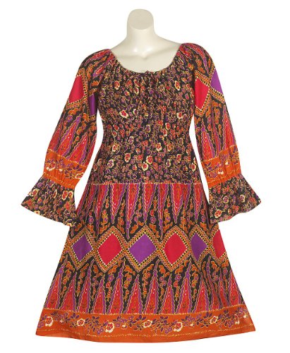 Long sleeve dress with elastic creating ruffle edge. Lace up keyhole, round neck is elasticized (can be worn off the shoulder). Smocked elastic at waist. Lined, ruffle hem has side slits. Elastic under the bustline allows for a lot of stretch..../ Stylish Travel Dress -- Size:2x Color:Print / Plus Sizes Dresses